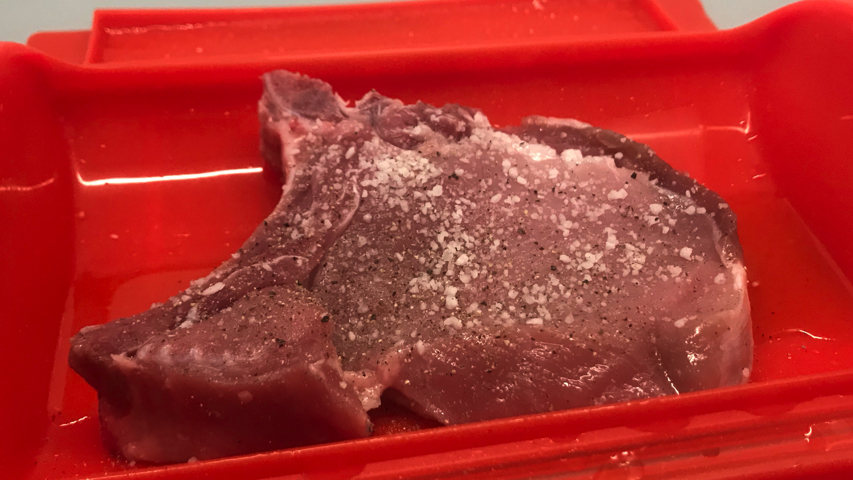Salpimienta el lado de la chuleta que queda hacia arriba.
