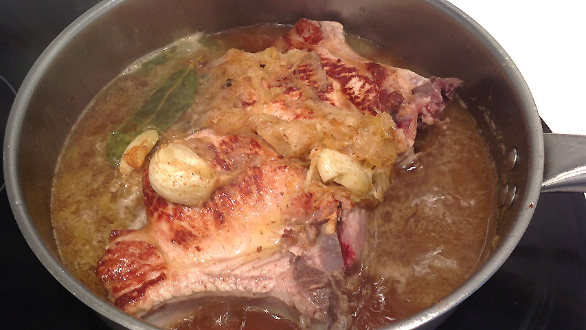 Destapa, saca las chuletas y deja que la salsa espese por evaporación.