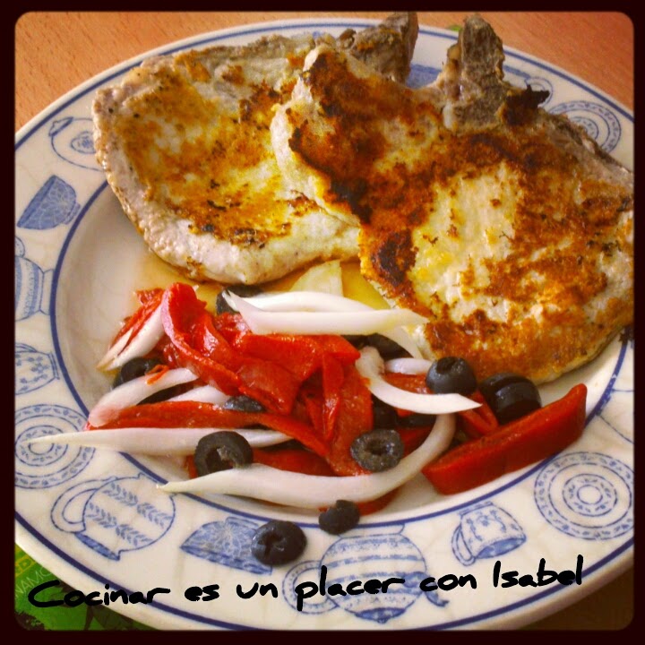 Bueno espero no os haya resultado difícil y os gusten de como a nosotros, como veis yo las he acompañado con una ensalada de pimientos, pero vosotros lo podéis acompañar de lo que mas os guste.