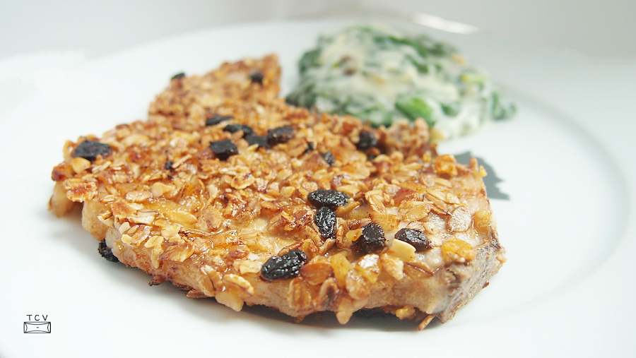Ya veis que no es nada dificil, la chuletas quedan de muerte, con el cras cras de los cereales y el puntito dulce y además tienes resuelto el primer y el segundo plato.