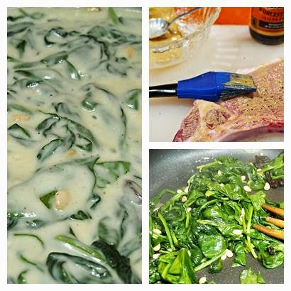 Reservamos y dejamos que macere un poco mientras preparamos las espinacas. Salteamos las pasas y los piñones con las hojas de espinacas, estas se hacen en un periquete, un cuanto veas que han perdido volumen ya están mezcla todo con la bechamel y ya tienes lista la guarnición. si quieres ver cómo se prepara la bechamel haz CLICK, puedes optar también por usar una de esas que ya vienen preparadas y sólo hay que calentar.