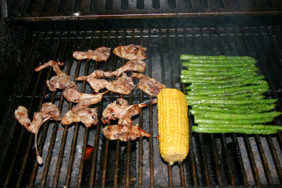 Hola amigos, yo soy de los que utiliza la barbacoa muchiiiiiisimo tanto a diario como los fines de seana, estos ultimos un pco mas, pero la utilizo tanto en invierno como en verano. hoy os voy a poner lo ultimo que me he hecho en ella, unas ricas chuletitas de cabrito y una mazorca de maiz junto con unos esparragos trigueros. el secreto de la barbacoa radica en hacer las cosas sin prisas, como en la cocina normal, sin prisa y con paciencia, que los alimentos ya se haran, si poneis el fuego a tope 1º se quedaran crudos y 2º algunos se quemaran y amargaran, asi que paciencia