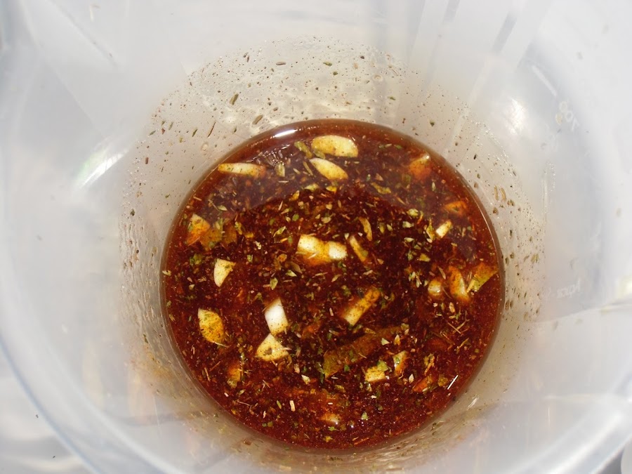 En un recipiente vamos echando los ajos picados junto con el resto de ingredientes.