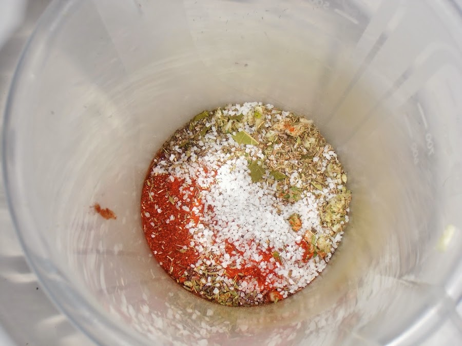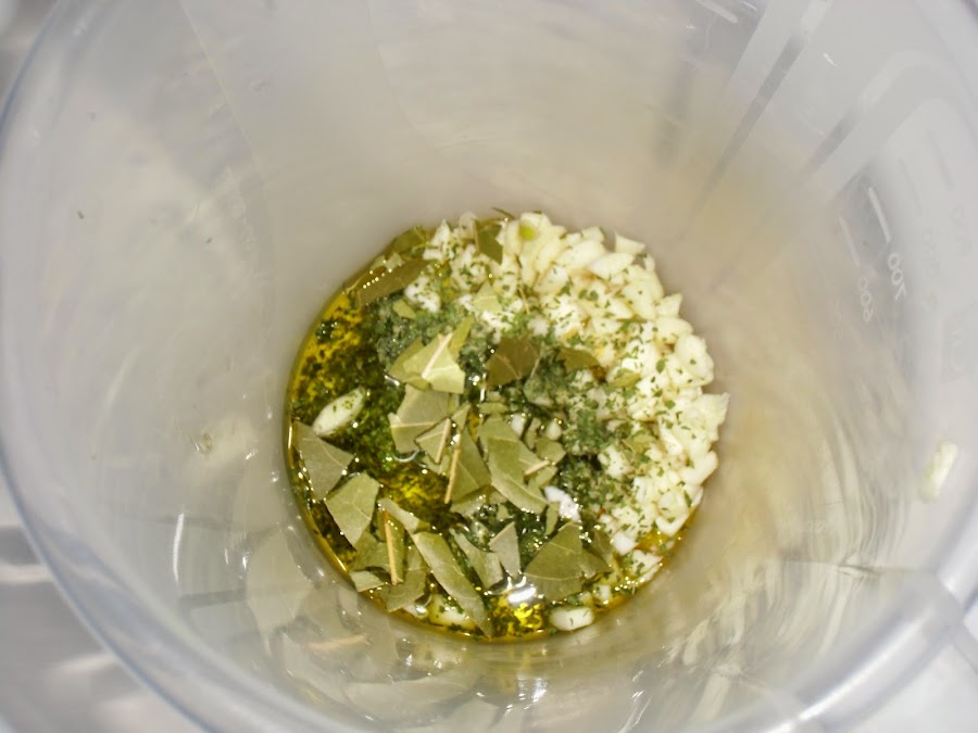 Perejil picado, una hoja de laurel en trozos, pimienta negra, sal...