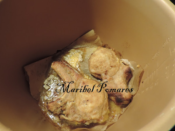 Ponemos un trozo de papel de horno para que no se nos raye la cubeta de la olla con los huesos.