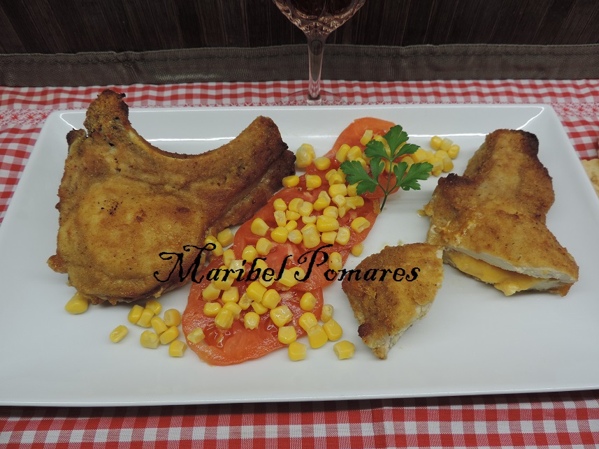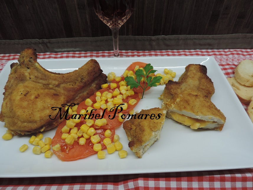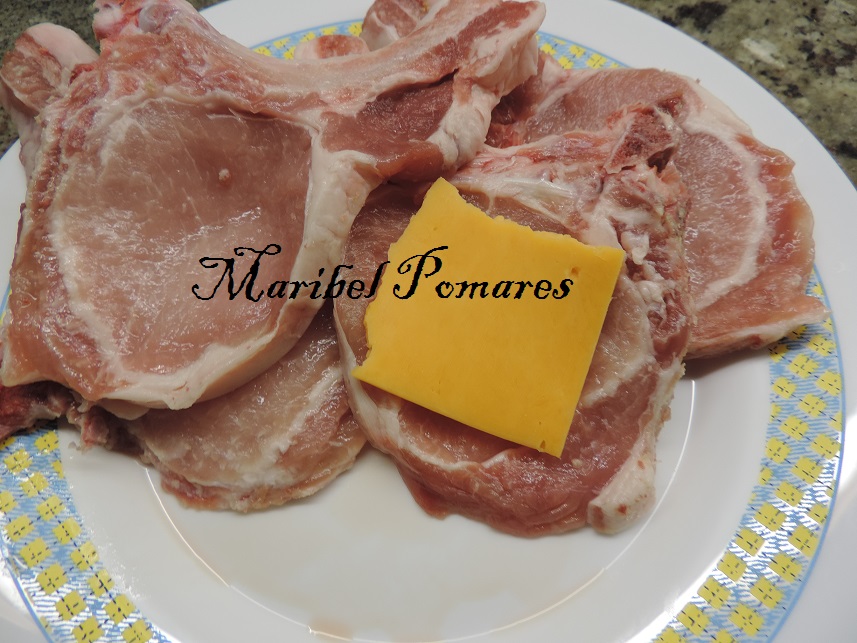 Ponemos un trozo de queso en la parte del centro de la chuleta.