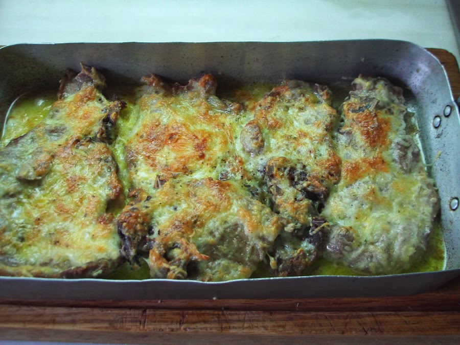 Cuando estén casi hechos las pasamos las chuletas por la mezcla de huevo y a continuación por el queso rallado.