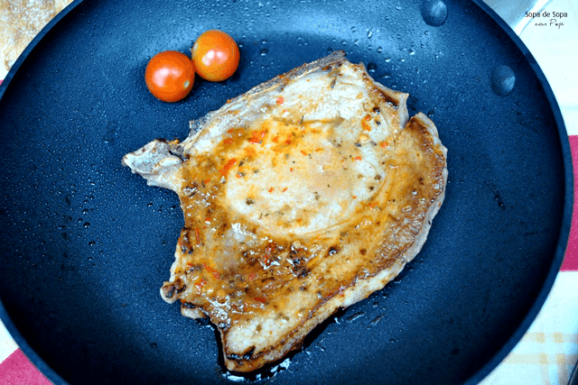 Poner el resto del aceite en una satén y cuando esté bien caliente hacer las chuletas a vuestro gusto. Dorándolas por los dos lados.