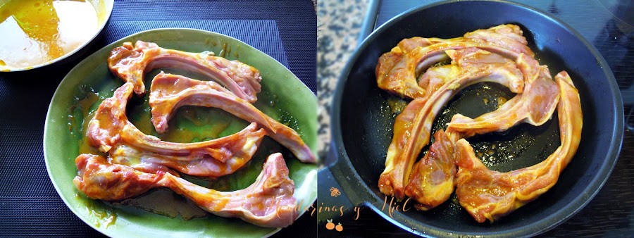 Unta cada chuleta con la salsa de cúrcuma y miel, dale la vuelta y unta por detrás también, deja en adobo unos 5 minutos para que cojan sabor.