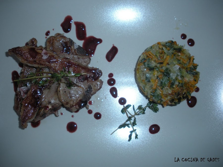 Chuletitas de cordero que ricas, las hemos acompañados un salteado de verduras que le va mucho y con una reducción de Oporto, que podríamos hacerla con cualquier vino que tengamos o nos guste más.