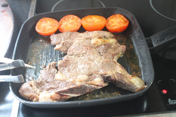 Nada más fácil que la realización de la receta de hoy, un simple chuletón y dos tomates, para dos personas.