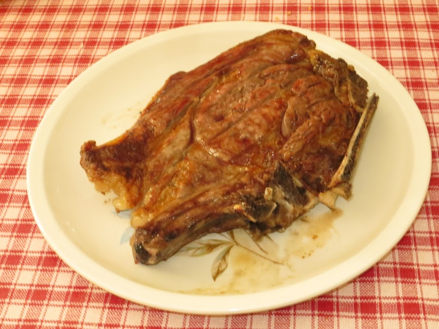 Echáis sal y pegáis un corte a la txuleta para que no se encoja, la colocáis encima de las parrillas y las ponéis en la lumbre, le vais dando varias vueltas para que se haga por todos los lados, en función de cómo os guste la carne la podéis tener más o menos tiempo en el fuego. Es importante que la txuleta en ningún caso se cueza, si no que se fría. Sobre la sal también hay diferentes versiones, hay gente que se la echa una vez cocinada o justo antes de sacarla, eso también va en gustos. Pero si la txuleta se ha cocinado bien os aseguro que es un plato exquisito.