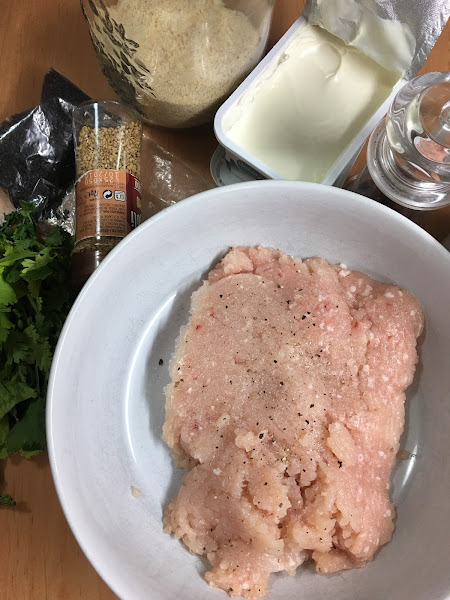 Sólo tenéis que pedir a vuestro pollero que os pase la carne de pechuga por la picadora (o bien hacerlo en casa vosotras, pero yo le pido siempre que me la piquen) , añadir el queso crema y hacer las bolitas empanadas para luego freír.