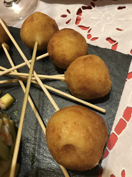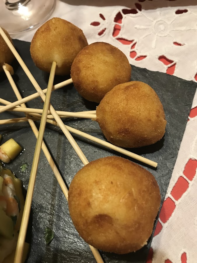 Freímos en abundante aceite y pinchamos el palo de brocheta de manera que quede centrado y listo!!!