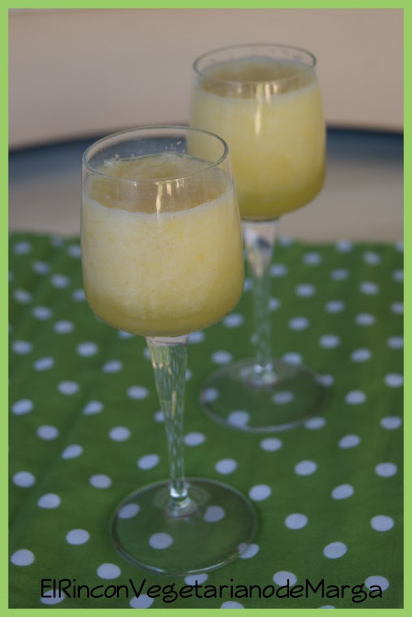 Pelamos y quitamos las pepitas del melón y lo introducimos en el vaso de la licuadora junto a la naranja pelada y sin la parte blanca, un pelín de agua, un chorro de licor de naranja dulce y una pizca de canela. Licuamos bien, pasamos el licuado por un colador chino (para que no queden grumos) y servimos en vasos de chupito, añadiendo si se desea un chorro más de licor de naranja por encima. Dejar enfriar un poco en la nevera y listo para tomar.