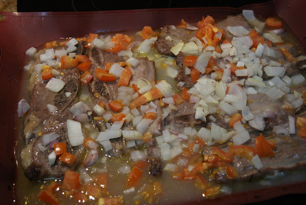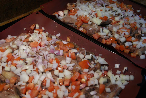 Lo ponemos en el horno a cocinarse y mientras picamos el tomate y la cebolla.
