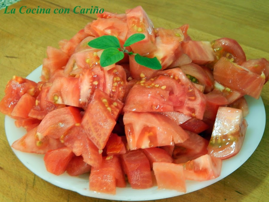 1,5 Kg de tomates maduros, pelados y cortados a gajos.