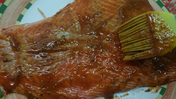 3.- Aplicamos con una brocha de cocina la salsa para cocinar el salmón