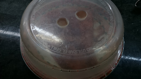4.- Cubrimos con film de cocinar y ponemos tapa de microndas.