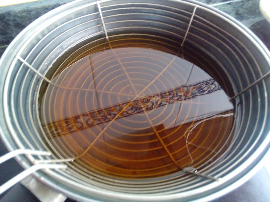 8.- Una vez dorados sacamos con espumadera y colocamos sobre papel o escurridor para que suelten el exceso de aceite.