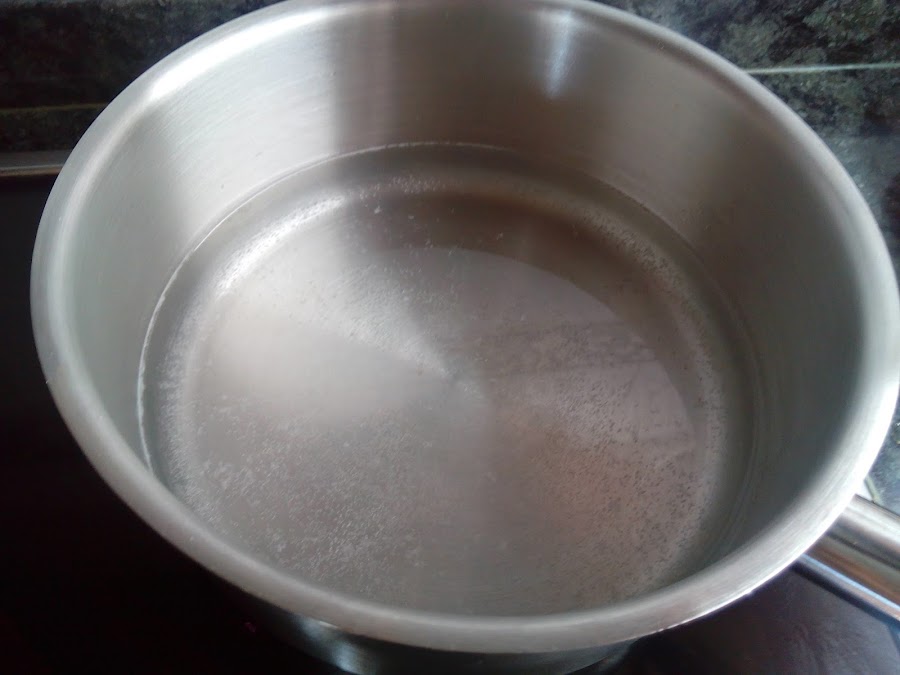1.- Calentamos el agua con una cucharadita de sal hasta comenzar a hervir.