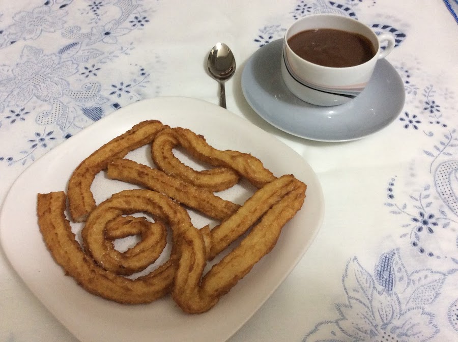 e) Directamente sobre el aceite.Los vamos friendo por tandas (que no se enfríe el aceite), les damos la vuelta y los vamos sacando cuando estén bien dorados y ponemos encima de papel absorbente. Cuando estén todos fritos, los colocamos y los espolvoreamos con azúcar. Podemos acompañar con un chocolate caliente.