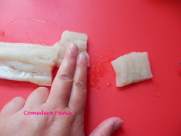 Cortamos el pescado en trozos de aproximadamente dos dedos de grosor.