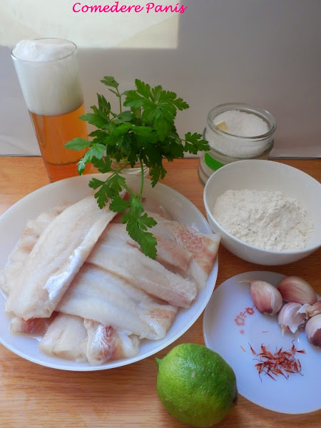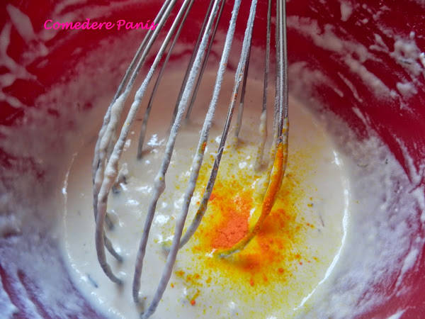 En un bol aparte mezcla la cerveza, unas cucharadas de harina y el azafrán.