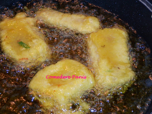 Pon a calentar el aceite y cuando esté bien caliente baña el pescado en la masa del rebozado y fríelo con el fuego fuerte.