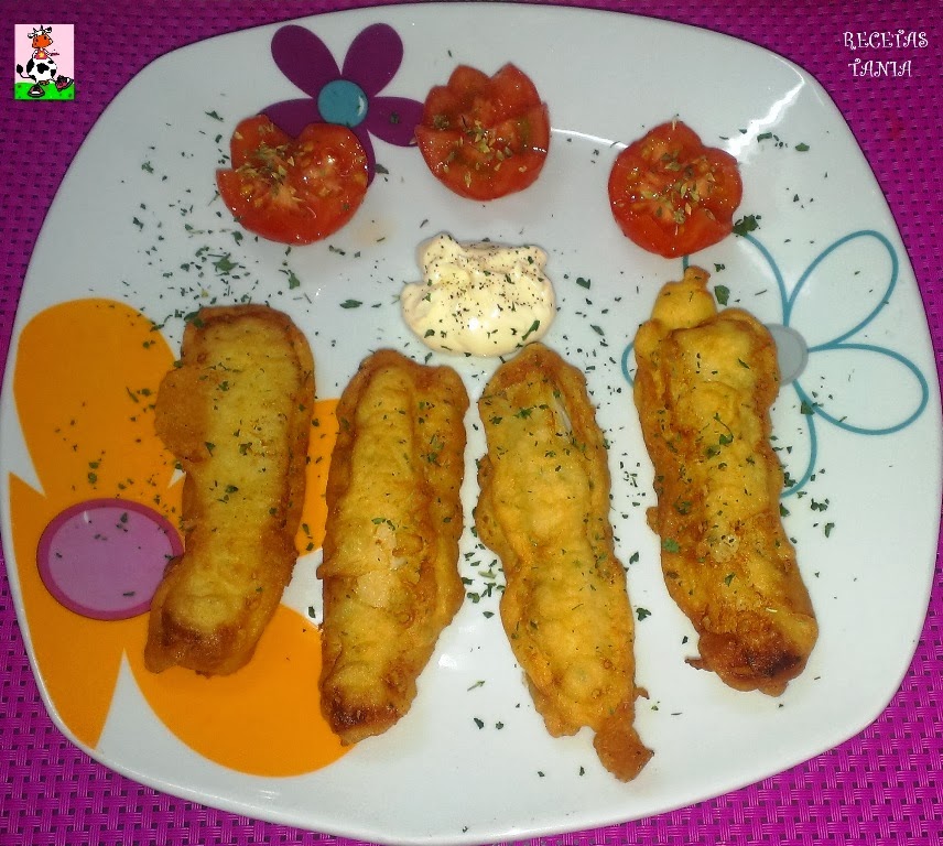 En una sartén ponemos aceite de oliva a calentar, pasamos las tiras del bacalao por la mezcla del otro bol y luego las ponemos en la sarten, tienen que quedar dorados y crujientes.