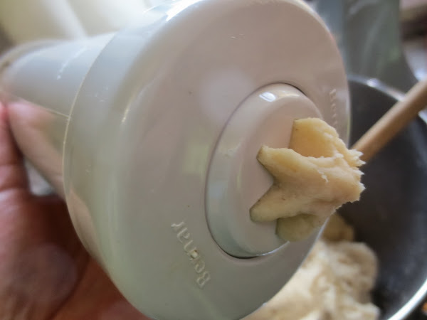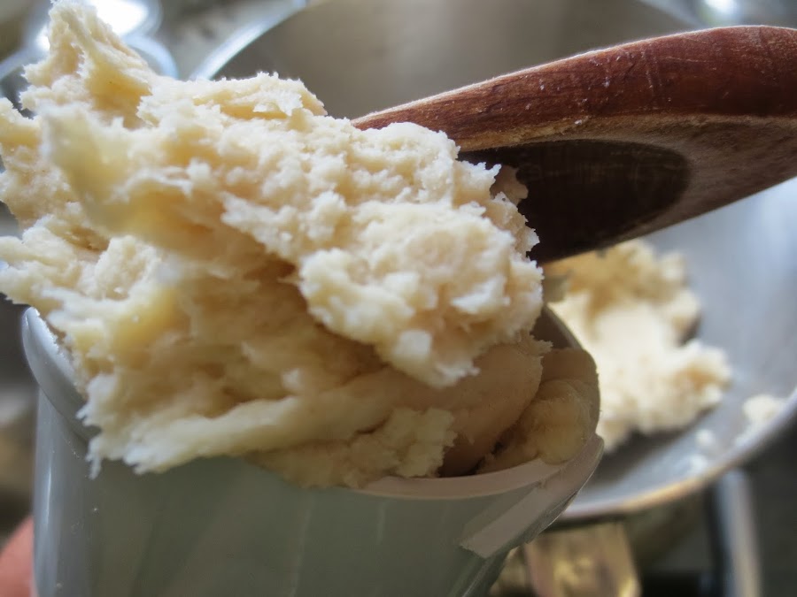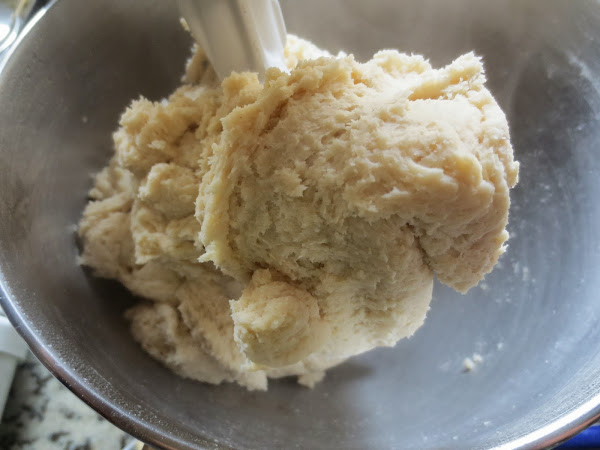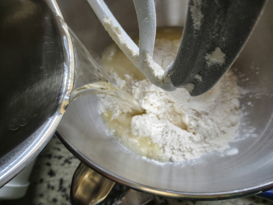 2- Poner a hervir el agua, sal y aceite, cuando comience a bullir, volcar en el bol de la KA con la harina y subir la velocidad progresivamente a 4, hasta que la masa se separe de las paredes del bol.