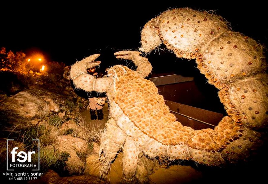 Y como os he dicho aquí os muestro algunas imágenes de la Mussona del pasado año que se transformó en un escorpión o "alacrán" como decimos en Águilas. Las instantáneas están captadas por el magnifico fotógrafo aguileño Fernando Mula.