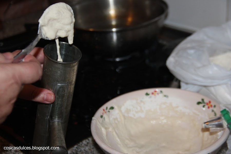 Pasado el reposo vertemos la masa en la churrera (si no disponemos de ella podemos usar una manga pastelera).
