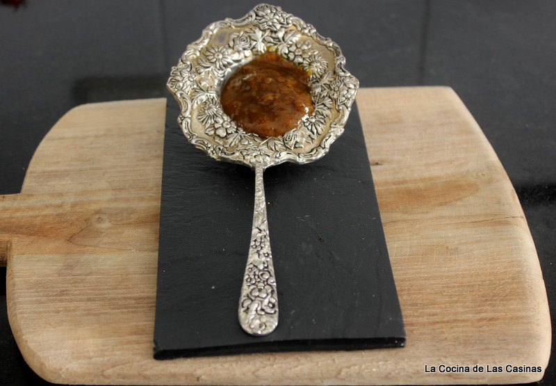 El Chutney es una especie de mermelada con trocitos que viene de India adoptado por los ingleses, repleta de sabores y en este caso con un toque salado, picante y especiado.