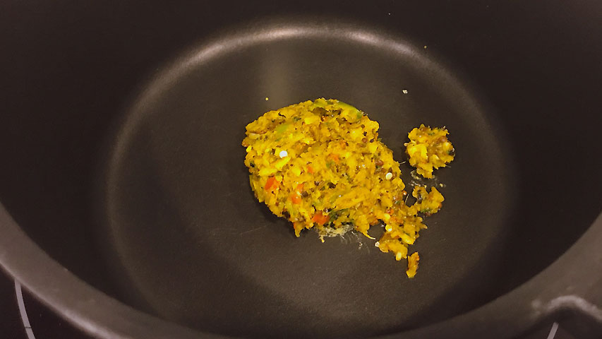 Pon el contenido del mortero en una cazuela a fuego medio-alto (7/10).