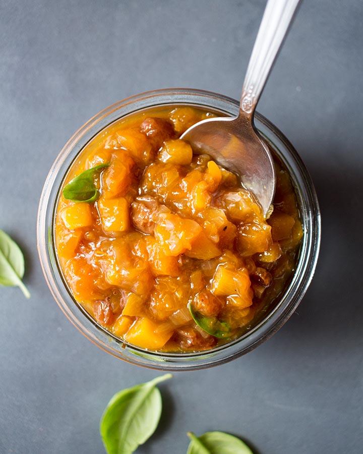 La receta de este chutney es muy sencilla, similar a la de una mermelada. Solo requiere colocar todos los ingredienes en una cazuela y dejar que los ingredientes se fundan a fuego lento durante unos 45′ hasta adquirir consistencia de chutney. A mí me gusta que todavía queden algunos trozos de fruta. Con esta receta podéis preparar unos cuantos tarros de chutney de melocotón y guardarlos en la despensa, o incluso congelarlo. Podréis preparar un picoteo rápido cuando invitéis a los amigos a tomar una cerveza o un vino en casa.