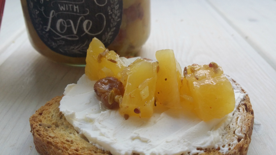 Pero a mí me encanta servirlos como aperitivo, con un poco de queso o vino, e incluso muchas veces me lo tomo para desayunar. Esto es porque soy una enferma chutneyadicta, claro. Es que una vez que se empieza no se puede parar, y este, de piña es muy muy especial.