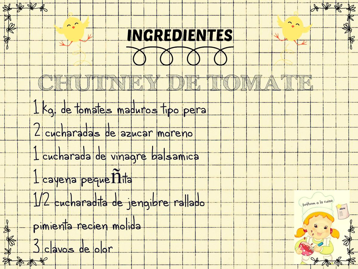Se trata de un rico Chutney de tomate. Seguramente que todavía estáis a tiempo de aprovechar los últimos tomates en las huertas y podéis preparar conserva para ir tirando durante el año.