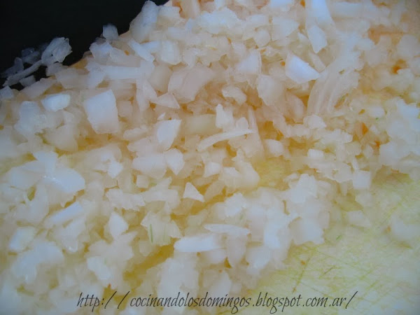 Cortamos la cebolla en brunoise (osea en cuadritos pequeños)