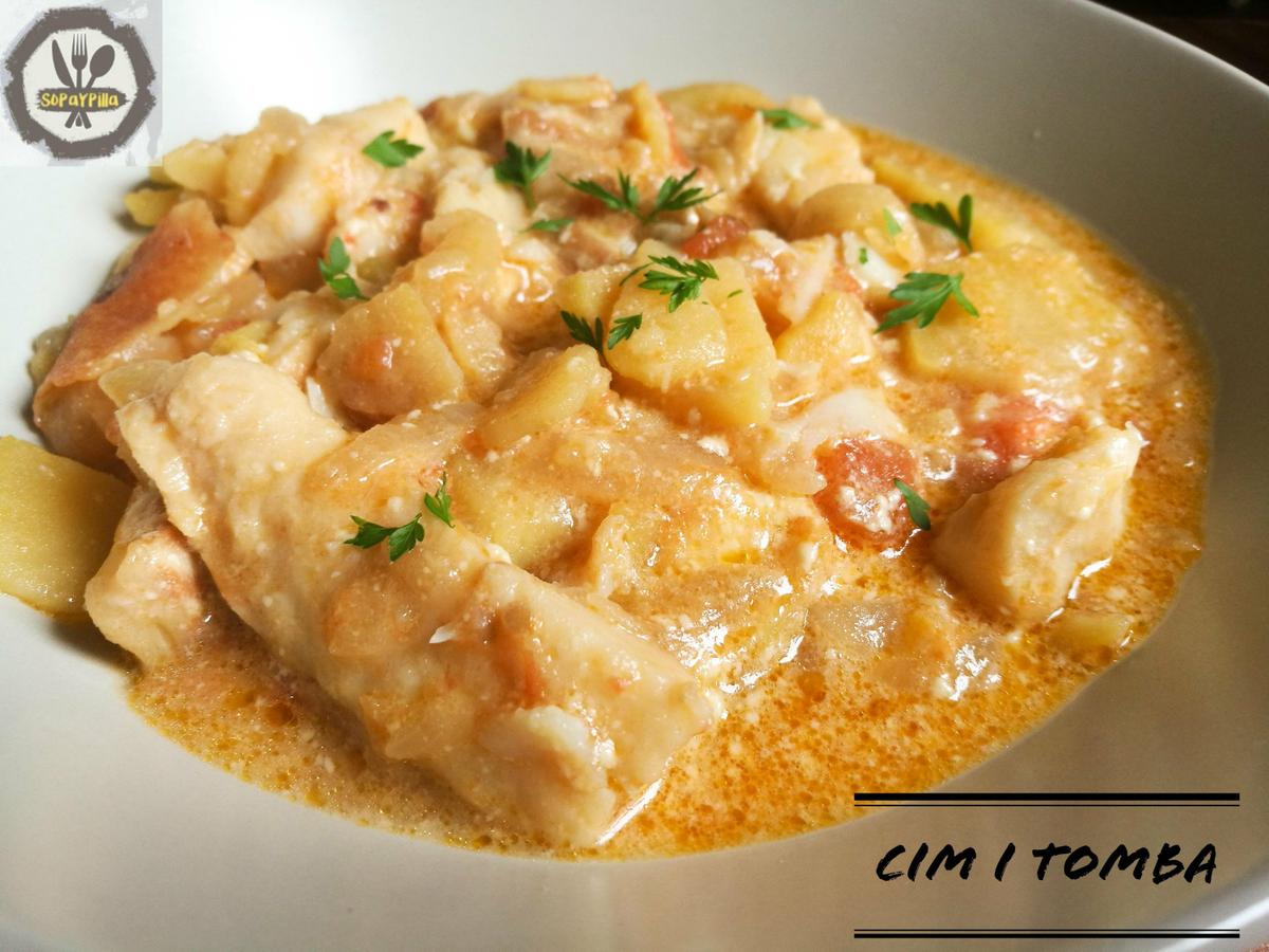 En la actualidad el «cim i tomba» se prepara habitualmente con rape, rodaballo, bacalao o raya. Así lo he preparado yo, con bacalao. El allioli puede ser también el que preparamos con huevo o leche, pero nada como seguir la tradición y hacerlo con el preparado con ajo y aceite, de toda la vida. Y si está «negat» (cuando se corta y deja de estar montado, casi líquido) mucho mejor.