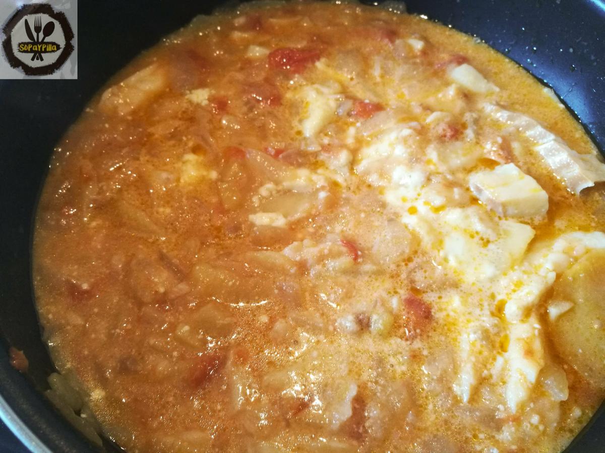 Cuando esté todo cocido, apartar del fuego y añadir el allioli por encima.