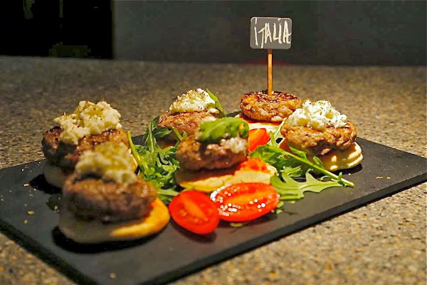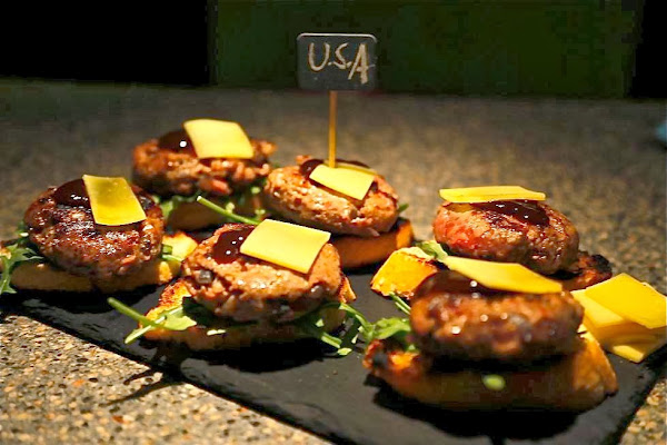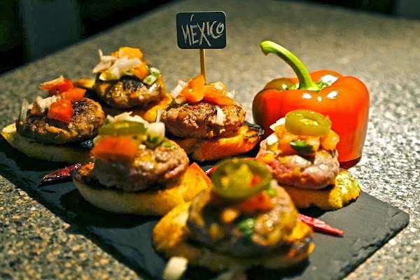 Mezclamos en un bol la carne con las pasas, un poco de cilantro picado, el curry y la cúrcuma (las medidas son relativas, a nosotros el curry nos priva, por lo que abusamos para notar el aroma hindú). Removemos bien con las manos limpias. Salpimentamos al gusto y seguimos mezclando sabores. Vamos formando las hamburguesas y tostando el pan en una sartén con un poco de aceite. Hacemos la salsa de yogur. Sencillísima y altamente efectiva: mezclamos un yogur griego (que de indio tiene poco, esa es la verdad) no azucarado con el cilantro, el zumo de medio limón o lima, una pizca de sal y aceite de oliva. Freímos las hamburguesas al gusto de cada uno. Montamos el plato: Pan de chapata, untamos con la salsa y encima la hamburguesa. Espolvoreamos un poco de curry o cúrcuma por el plato para decorar. MÉJICO: Explosión en el paladar 300 grs de carnePimiento amarilloTabascoChile molidoJalapeñosPan de chapataPico de gallo (tomates y cebolla picada, cilantro, sal, limón) Picamos muy finamente un pimiento amarillo (que le da un color distinto) y lo sofreímos unos minutos en una sartén con aceite. Mezclamos en un bol la carne con un pimiento amarillo. Añadimos unas gotas de tabasco y de chile molido. Lo mismo de siempre, ahí ya manda el paladar de tus invitados. Salpimentamos al gusto. Tostamos el pan y vamos con el pico de gallo, que es el alma mejicana del plato. Troceamos unos tomates (dejamos la piel y las semillas) y una cebolla o cebolleta. Los mezclamos con un poco de cilantro picado, sal y zumo de limón. Freímos las hamburguesas y montamos el plato. Pan de chapata, la hamburguesa, coronamos con un poco de pico de gallo y unas rodajitas de jalapeño. Decoramos con chile entero... para osados. NOTA: No lo hice pero le iría fenomenal untar la rebanada de pan con un poco de guacamole. ITALIA: Brisa del Mediterráneo 300 grs de carneMozzarellaMasa de pizza Albahaca picadaAlcaparras, aceitunas...Rúcula, tomate cherryTomate triturado y orégano Para no enloquecer demasiado, usamos masa de pizza ya preparada. Sólo hay que trabajarla un poco en una superficie limpia con un poco de harina. La estiramos bien y sacamos con ayuda de un molde o un vaso las rodajas de pan. Las tostamos en el horno unos minutos, que se doren, no se quemen. Mezclamos con la carne un poco de mozzarella picada (se podría añadir alcaparras o aceitunas picadas, que le dan un toque muy italiano) y albahaca. Salpimentamos. Freímos las hamburguesas y montamos el plato: Pan de pizza, untamos con tomate triturado y un poco de orégano seco. Colocamos la carne y coronamos con un poco más de mozzarella. Decoramos con unas rodajas de tomate cherry y rúcula. U.S.A: El salvaje oeste 300 grs de carne100 grs baconQueso CheddarCebollaRúculaSalsa barbacoa Una bomba, ya os lo digo. En una sartén sin aceite, vamos friendo el bacon en pequeñas tiras o trozos. Dejamos que se cocine hasta que quede hecho pero no crujiente. Lo mezclamos con la carne. Por otro lado sofreímos la cebolla muy fina en la misma sartén con un pelín de aceite (el bacon habrá soltado lo suyo) y la dejamos pochar unos minutos. Removemos todo bien y salpimentamos. Tostamos el pan. Freímos las hamburguesas y montamos el plato: pan de chapata, un poco de rúcula o lechuga, la carne, vertemos la salsa barbacoa por encima y decoramos con unas muescas de queso, y que se derritan lentamente con el calor de la hamburguesa. NOTA: Os dejo un link donde podéis ver cómo preparar salsa barbacoa casera http://www.thehitchcook.com/2013/07/costillas-asadas-con-salsa-barbacoa.html JAPÓN: El minimalismo culinario