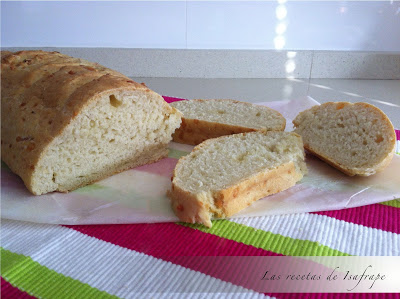Desde mi blog, Las recetas de Isafrape, te enseño este delicioso pan relleno de gruyere, emmental, queso de cabra y mozzarella. La base es la receta básica del pan: harina de fuerza, agua tibia, levadura prensada de panadería y sal. Todo ello mezclado, relleno de estos quesos y horneado da como resultado un pan espectacular.
