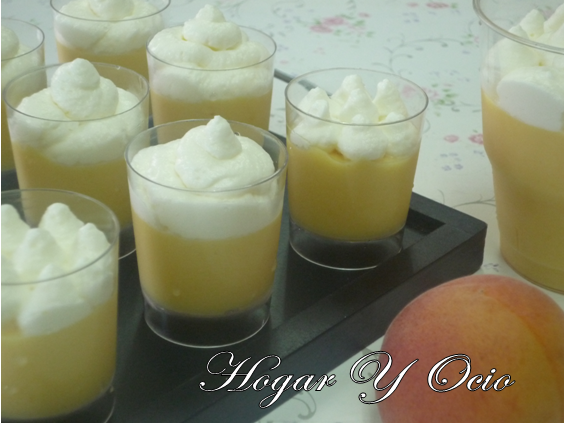 Otros vasitos dulces, esta vez de Alicia, del blog Hogar y Ocio, melocotón y nata (crema de leche), combinación perfecta. Necesitamos melocotón en almíbar, el almíbar, mantequilla, huevos, maizena, nata (crema de leche) y azucar. La idea es hacer una crema pastelera con los melocotones y el almíbar. La ponemos en los vasitos y la dejamos enfriar. Y luego, montamos la nata (crema de leche) y la ponemos por encima.