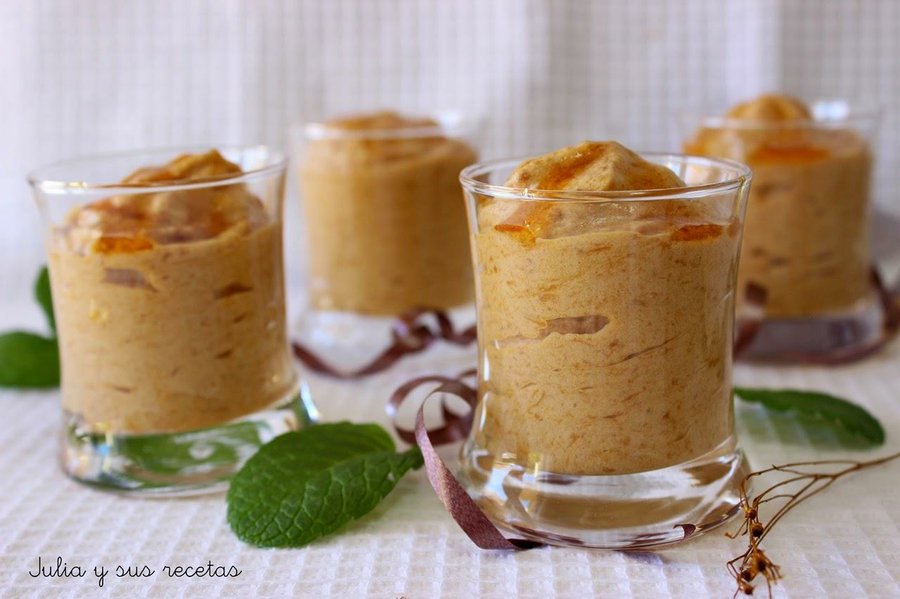Esta momnada nos la presenta Julia en su blog Julia y sus recetas. Necesitamos azúcar, leche, gelatina en láminas, huevos, maizena, nata (crema de leche) líquida, azúcar glas. Hacemos un caramelo al que añadiremos la leche y la gelatina ya hidratada, por otro lado montamos la nata (crema de leche). Luego, mezclamos las dos preparaciones y dejamos que se enfríe. Ponemos en una manga pastelera y servimos en los vasitos. Delicioso y delicado.