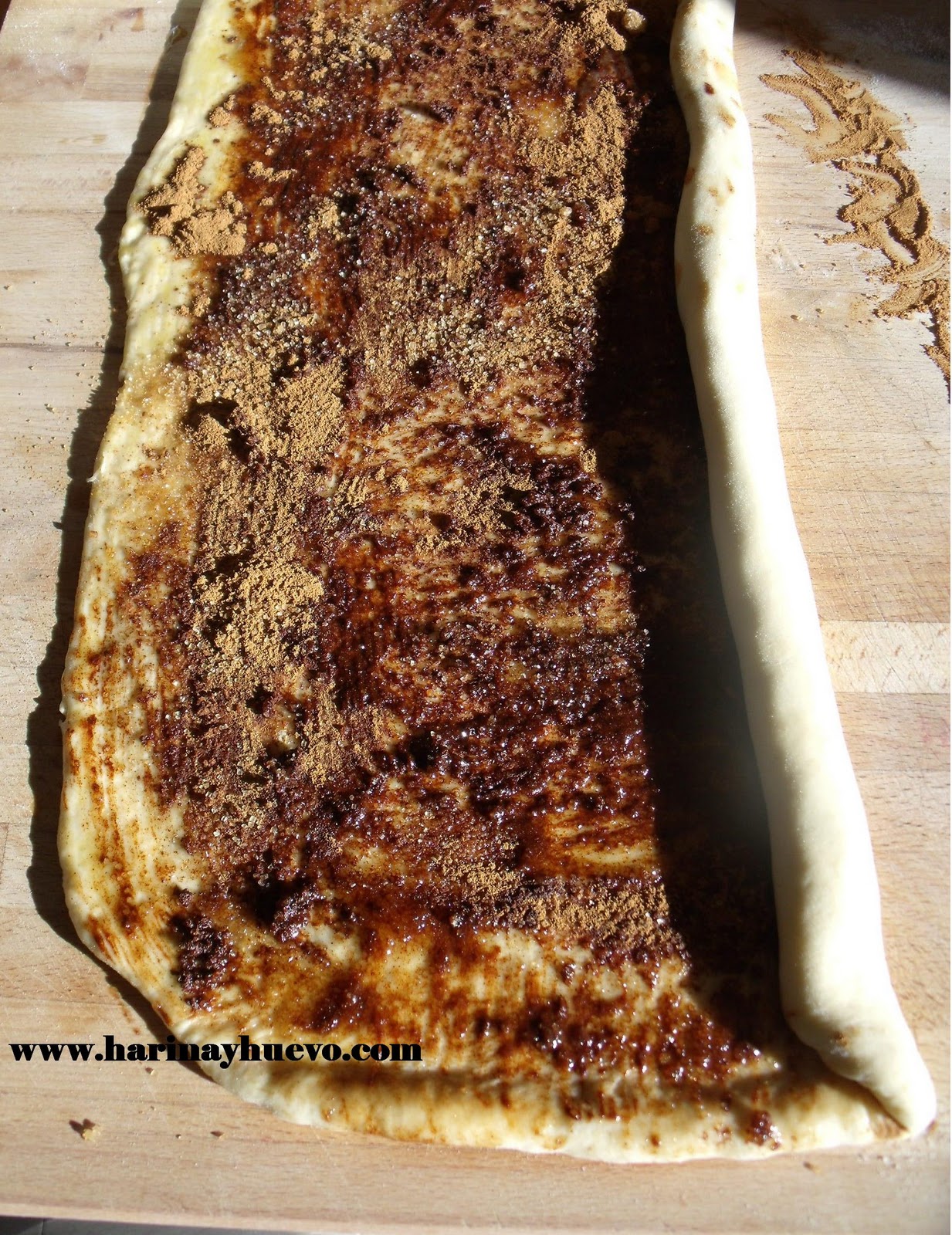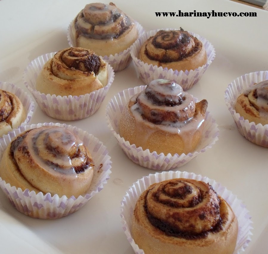 ¿Como hacerlos? fácil hacer los rollitos de canela como siempre, AQUÍ tenéis la receta. Pero cuando estiréis la masa hacerlo para que los rollitos os queden del tamaño de un cupcake, el lado hacia el que enrolláis debe ser más o menos la mitad del que os pongo en la receta, como en la foto.
