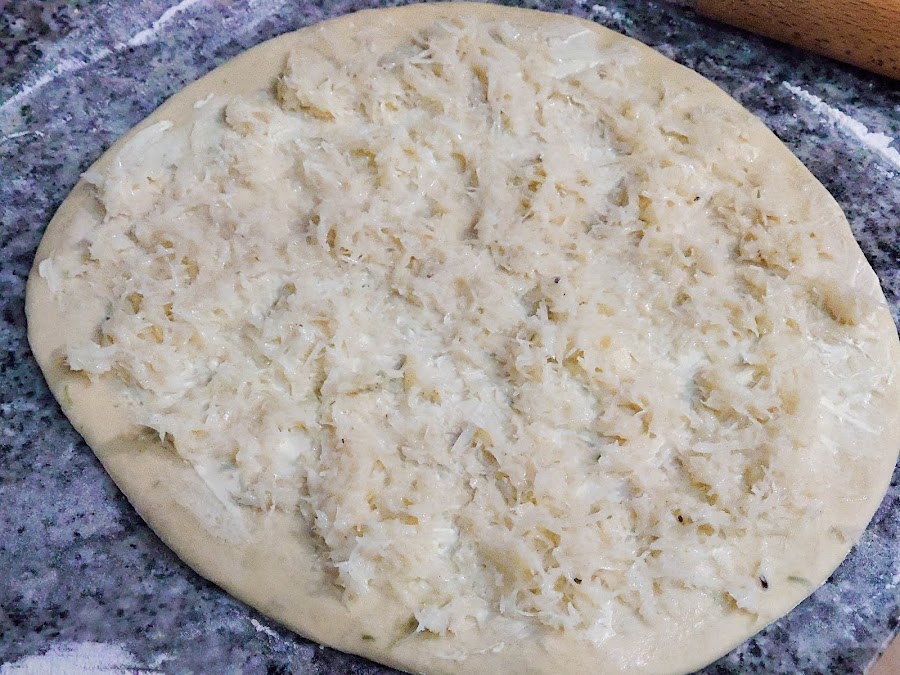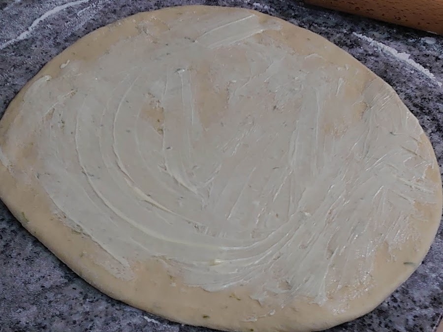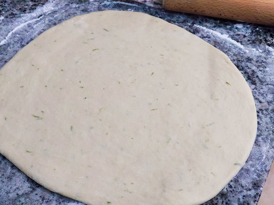 Dividir la masa en dos y estirar con ayuda del rodillo en forma de cuadrado: