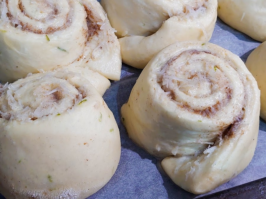 ¿Porque me gusta tanto esta receta? la textura y suavidad del cinnamon rolls, le damos aroma cítricos con el limón, el dulzor del coco y vainilla, y le damos un toque explosivo con la canela, y por si te faltaba algo, podemos coronar el cinnamon rolls con un glaseado con leche de coco y un toque de limón, y deja que fluya la magia. Mira que pinta: