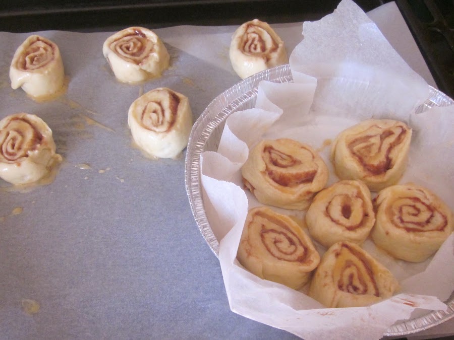 Para cortar los rollos, debemos hacerlo con un cuchillo que corte bien, parecen que salen irregulares, pero os aseguro que en el horno se "emparejan y se ponen derechos".
