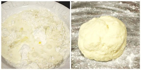 Batimos ligeramente el huevo y lo mezclamos con la leche. Se lo añadimos a la mezcla anterior. Amasaremos hasta que se forme una masa que no se enganche a las manos.